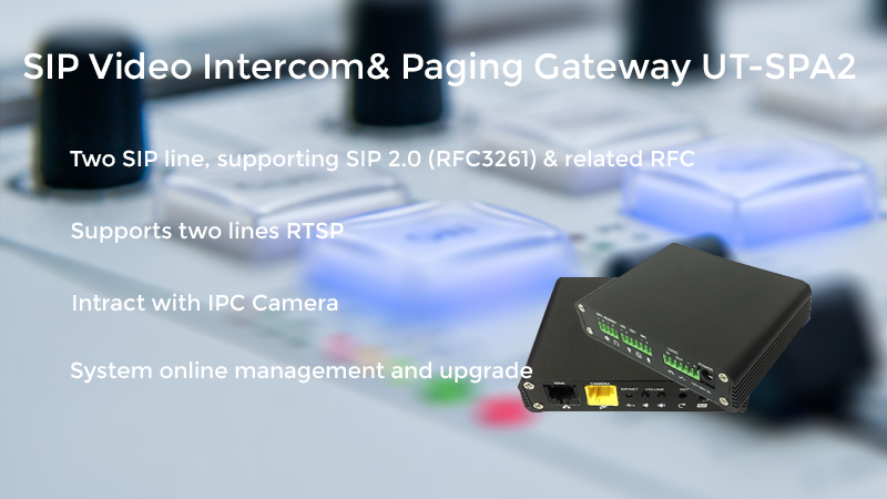 UT-SPA2 is a SIP video intercom & Paging device for industry application. The media stream transmission adopts standard IP/RTP/RTSP protocol. It inherits the advantages of the stability and the sound quality of Uniteli VOIP Phone. It is perfectly compatible with all the current SIP IPPBX /IMS platforms, such as Asterisk, Broadsoft, 3CX, Elastix, etc. It has various functions and interfaces, Such as Intercom, broadcast, video , security, recording, to adapt different application environment.