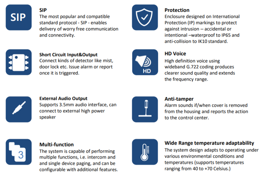 The SIP based audio system UT-DP21 utilizes the built-in intercom and paging capability already inherent in most modern IP PBX systems.